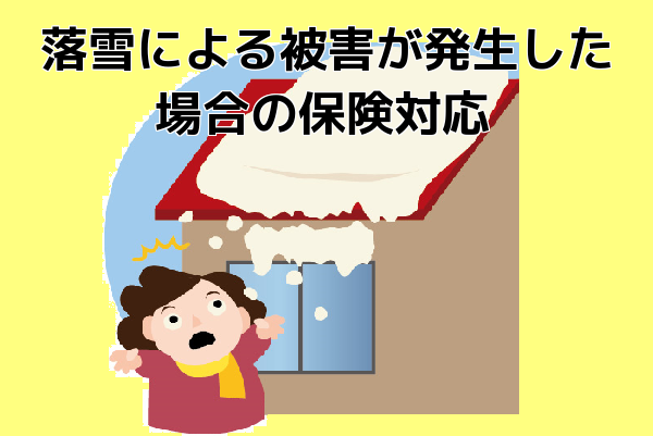 このような事故に関してはマンション屋上からの落雪が原因ということでマンション管理組合が加害者になる可能性もあり、その場合には共用部火災保険では雪災補償ではなく施設所有者賠償責任補償という特約が適用となります。