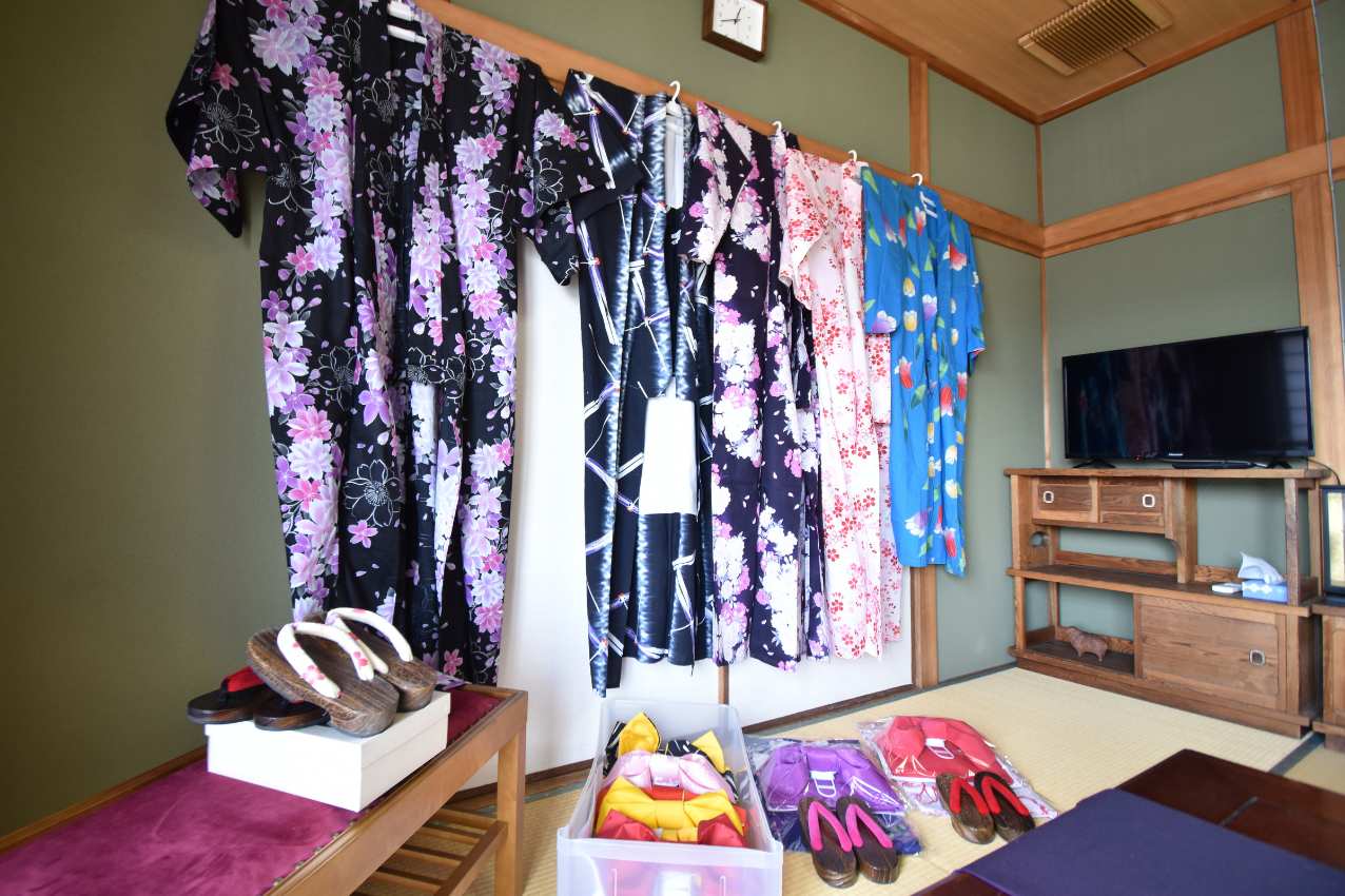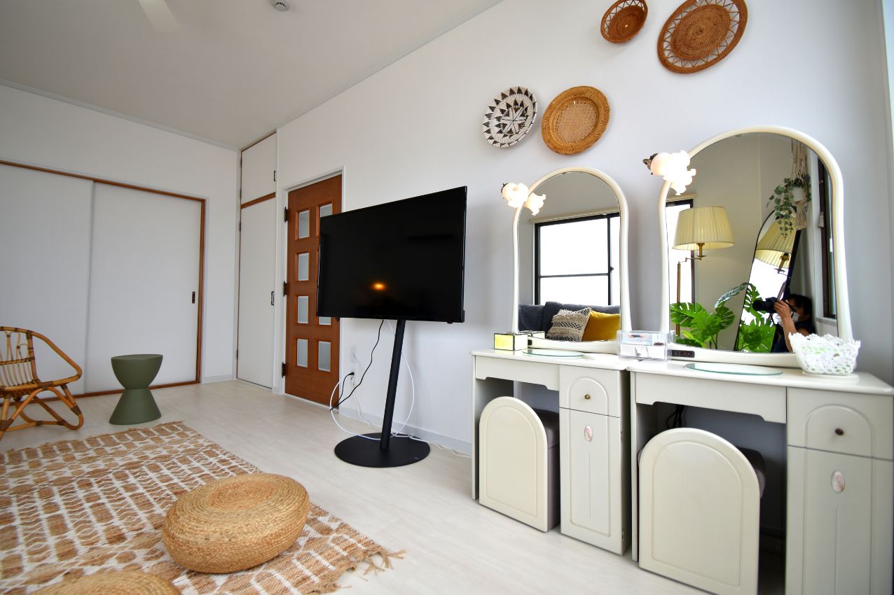 ここで女子会をしたら絶対に盛り上がることまちがいありません。お店みたいに充実したメイク道具や浴衣でいつもとは違う姿で過ごすのも楽しいですね。